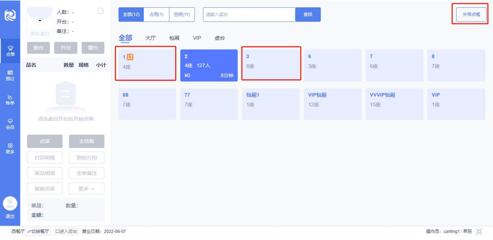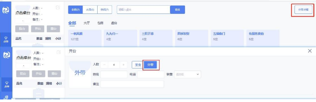 ② 外带开台与堂食开台的步骤一致,可查看 2.2.1 堂食开台