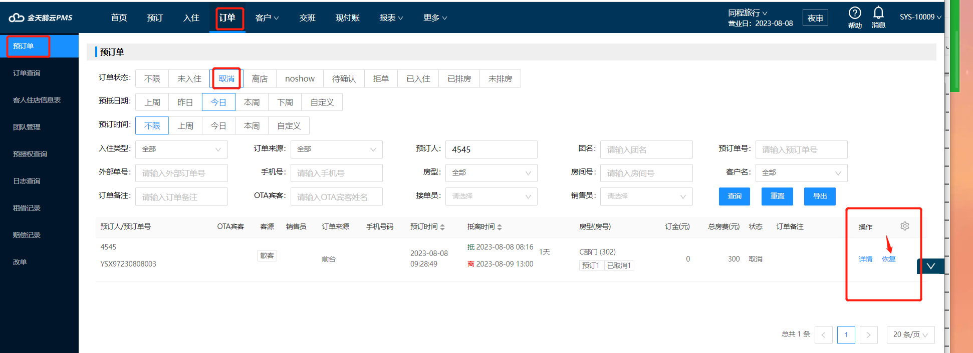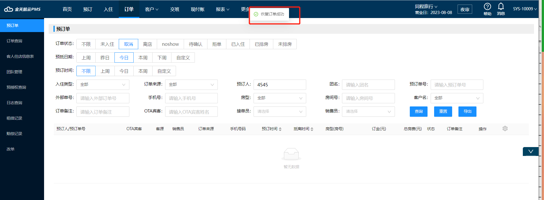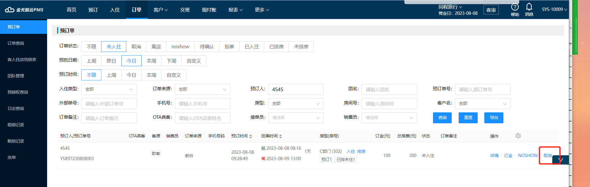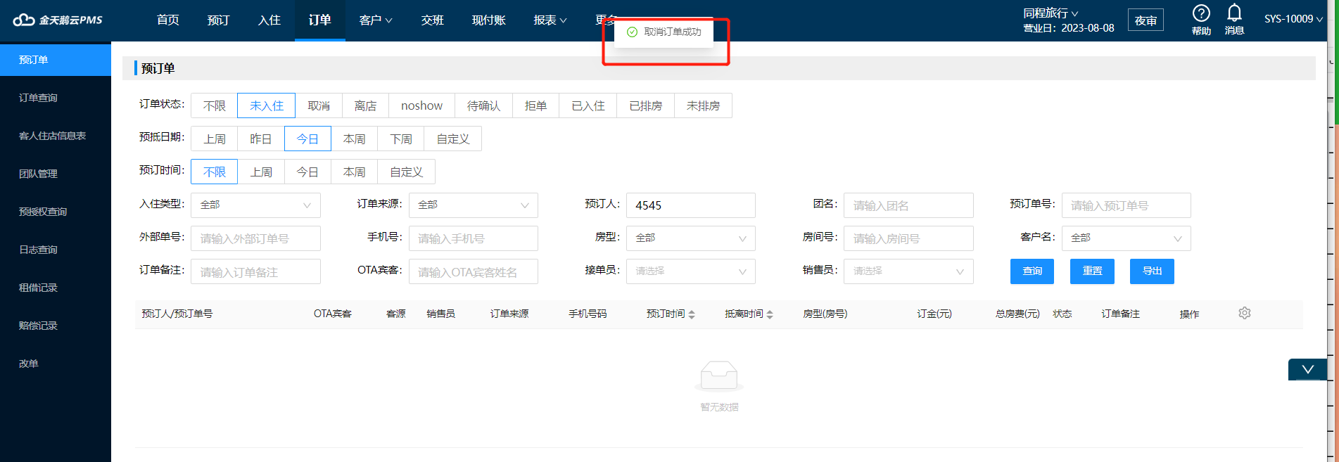 若预订单无预订金,直接点“取消”,订单即已取消;