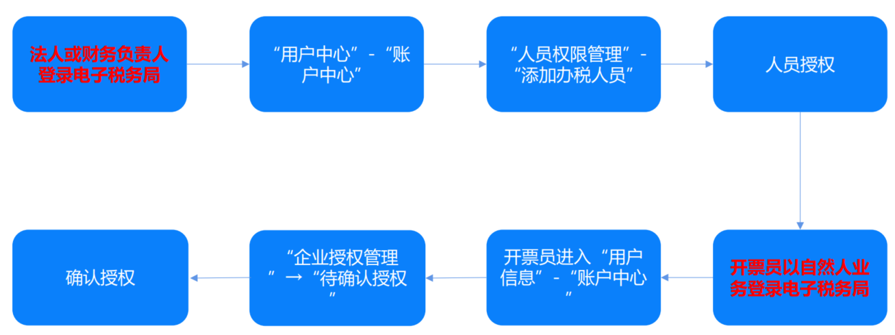 解答:开票员账号的新增是需要登录电子税务局系统处理的,流程见下图及详细的教程文件