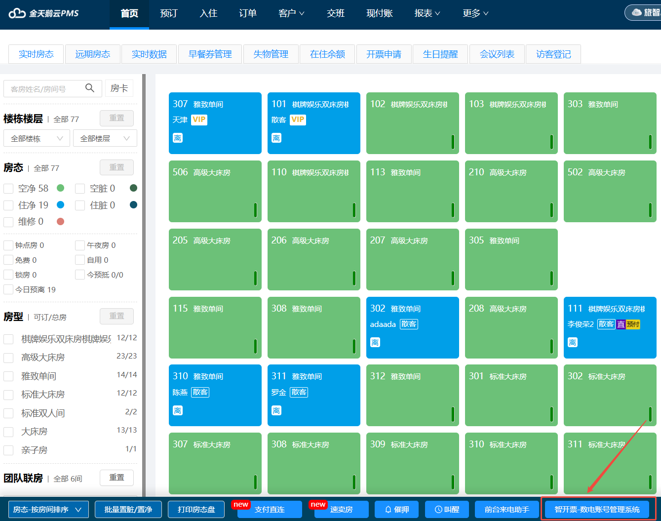 PMS底部“智开票-数电账号管理系统”入口,点击后即可跳转数电账号管理页面