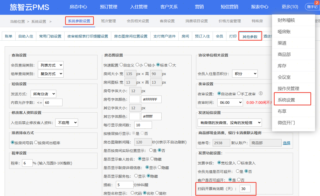 更多-系统设置-系统参数设置-其他参数-发票功能设置