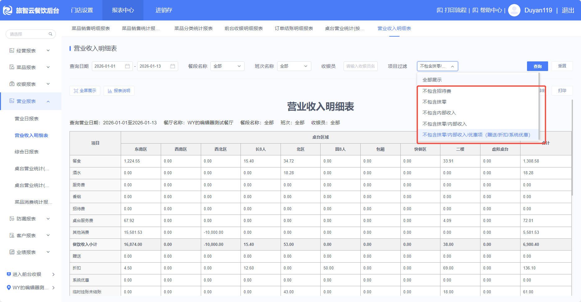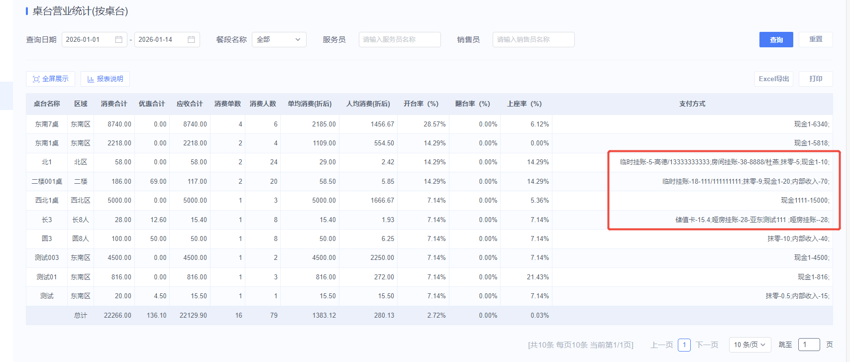 2、 菜品销售明细表 、桌台营业收入(按桌台)优化支付方式字段