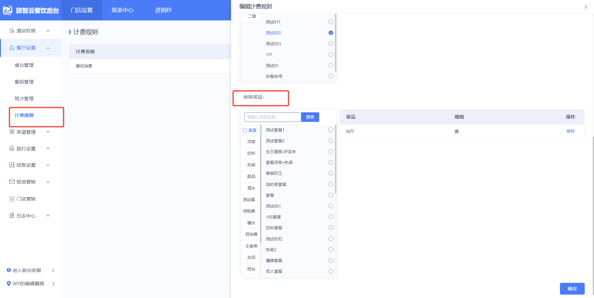 五、低消设置菜品排除