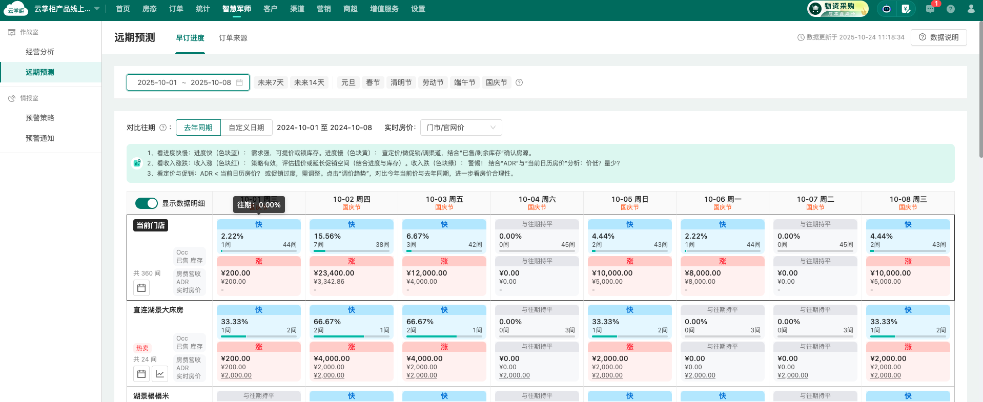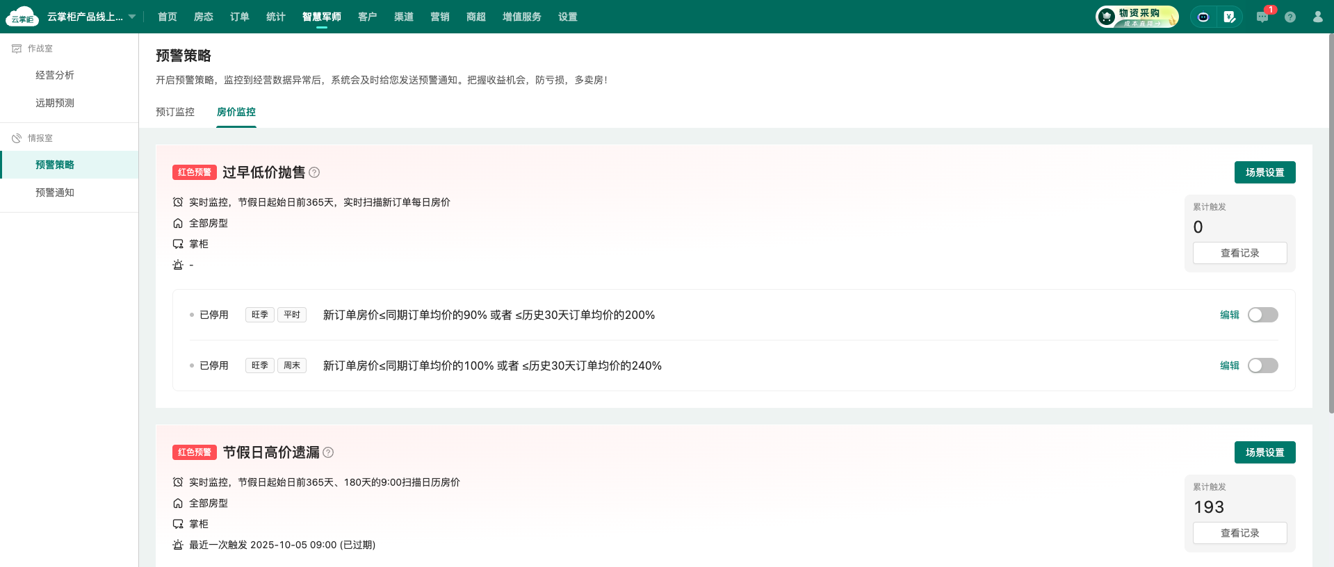 2025.4.10  | 携程直连支持同步未来365天价量态数据  | 网页端  | 注意事项: 1、新开直连,系统即推未来365天数据 2、已直连门店,如需推送未来365天数据,可通过3个方式:①修改关联房号或价格方案 ②找客服手动推送 ③自助手动修改未来365天房价 3、直连每天自动向携程推送第365天价态数据,确保云掌柜与携程未来365天价态始终保持一致 4、如远期价格未部署,可通过把价格方案默认价调整为高价,以免低价订单。(价格方案默认价是无止期的)。如不接受更远期预订,还可以在云掌柜上锁掉房态  | |