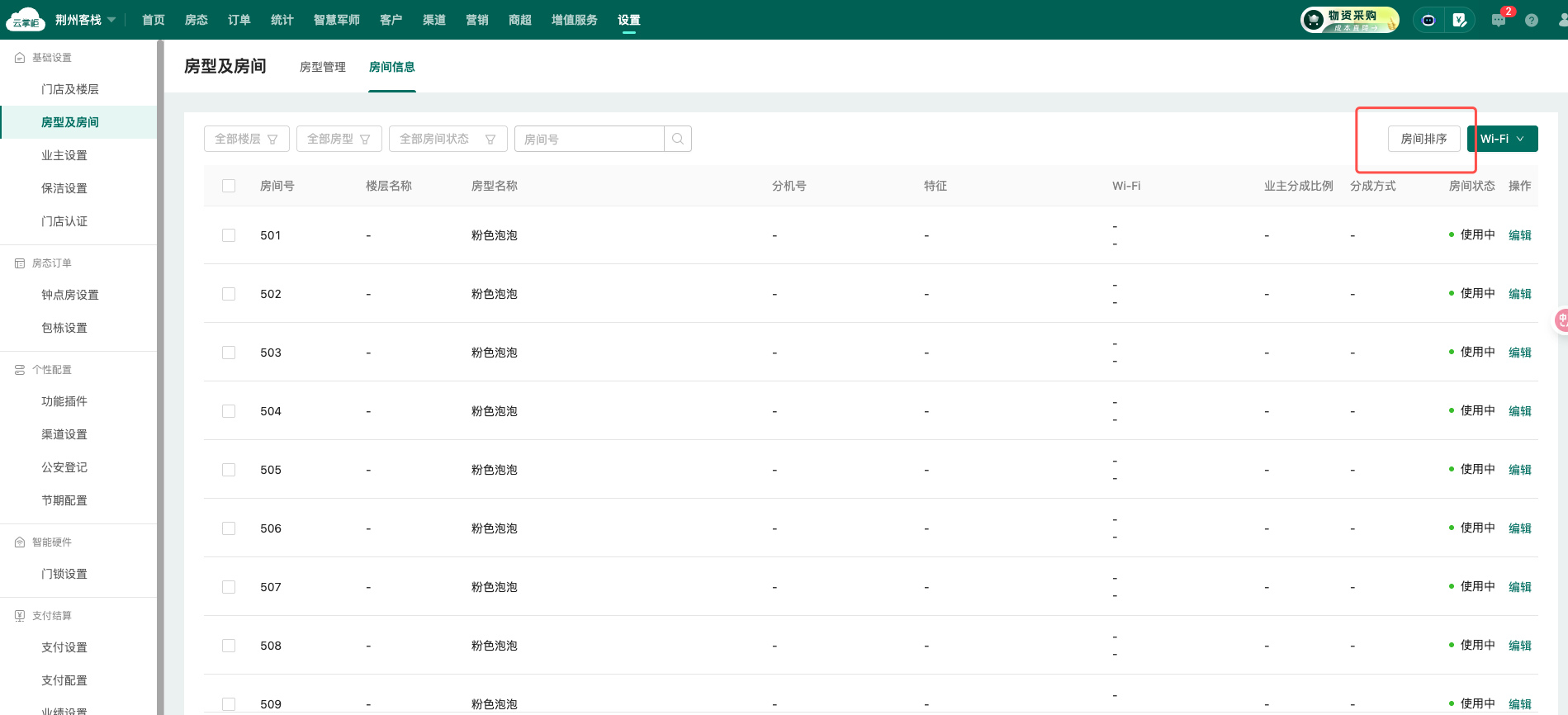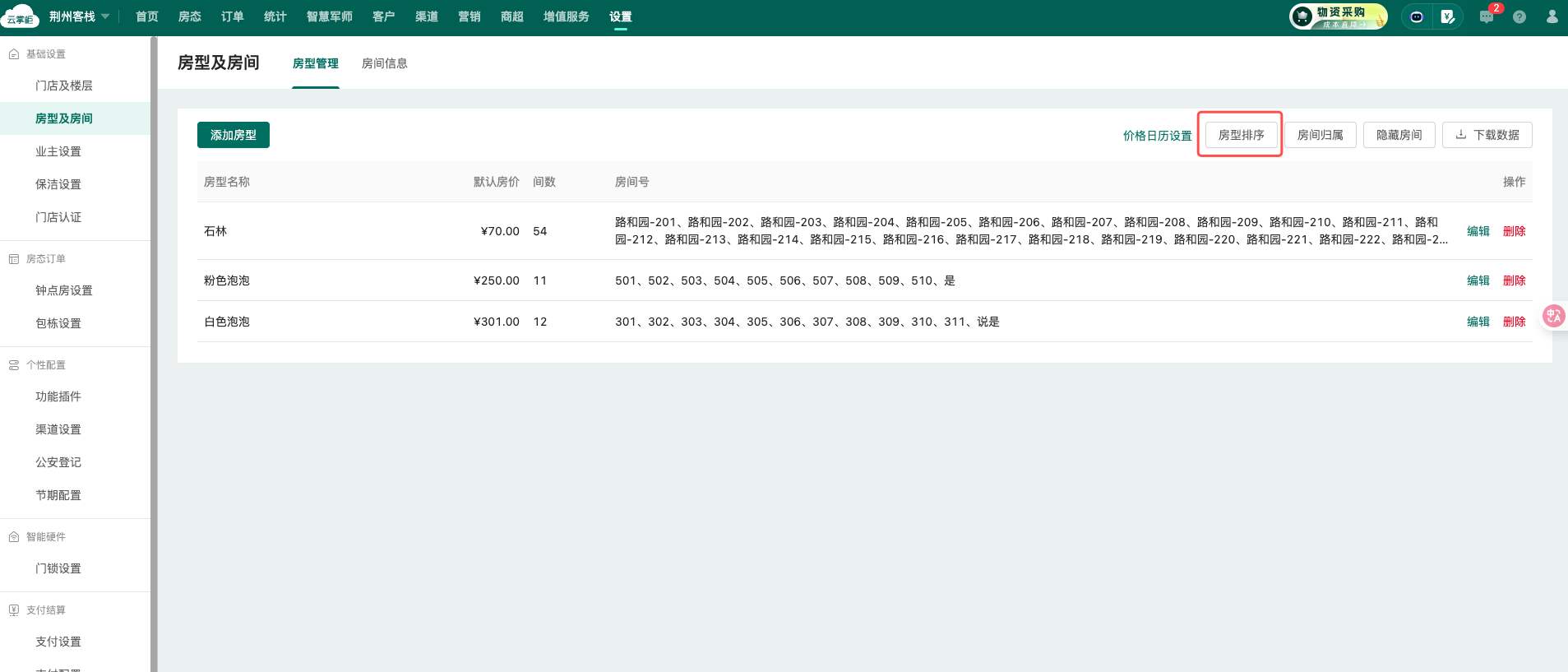1.4 原“设置”-“房型及房间”-“房态展示”的房型及房间排序功能调整至以下2个模块