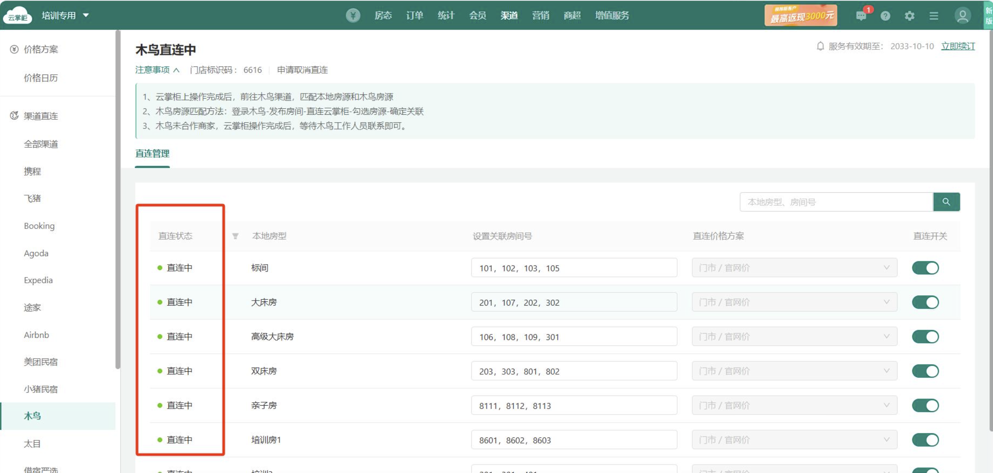 4、直连后,掌柜可以在木鸟渠道页修改直连房型关联关系,也可取消直连