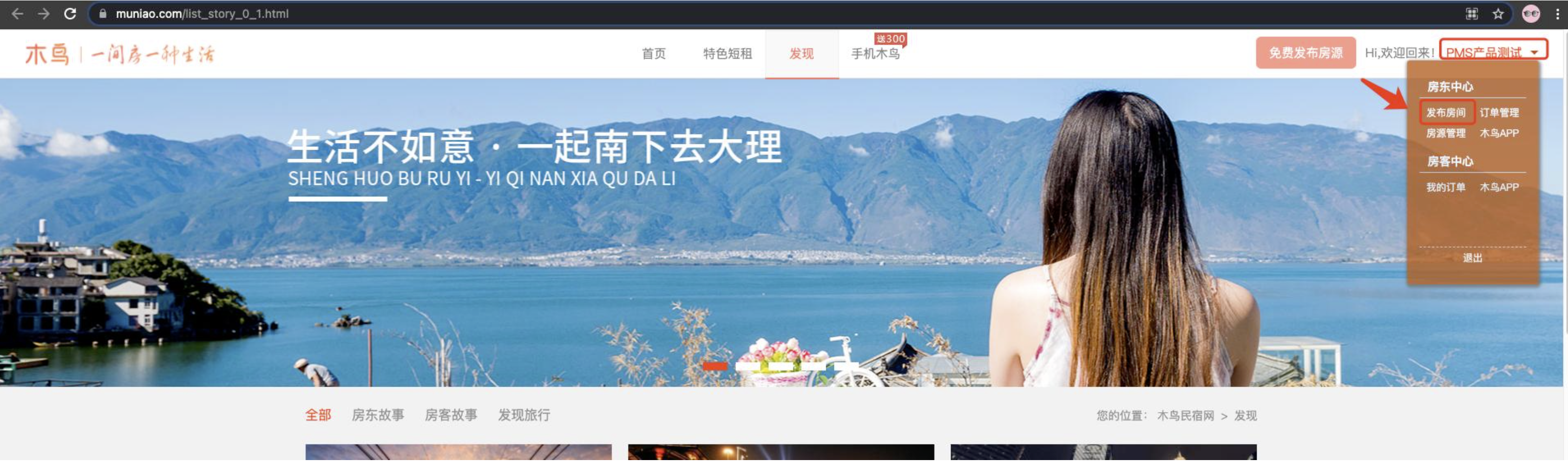 操作教程:在云掌柜操作后,通过网页登录木鸟房东账号,网页右上角点击【发布房间】