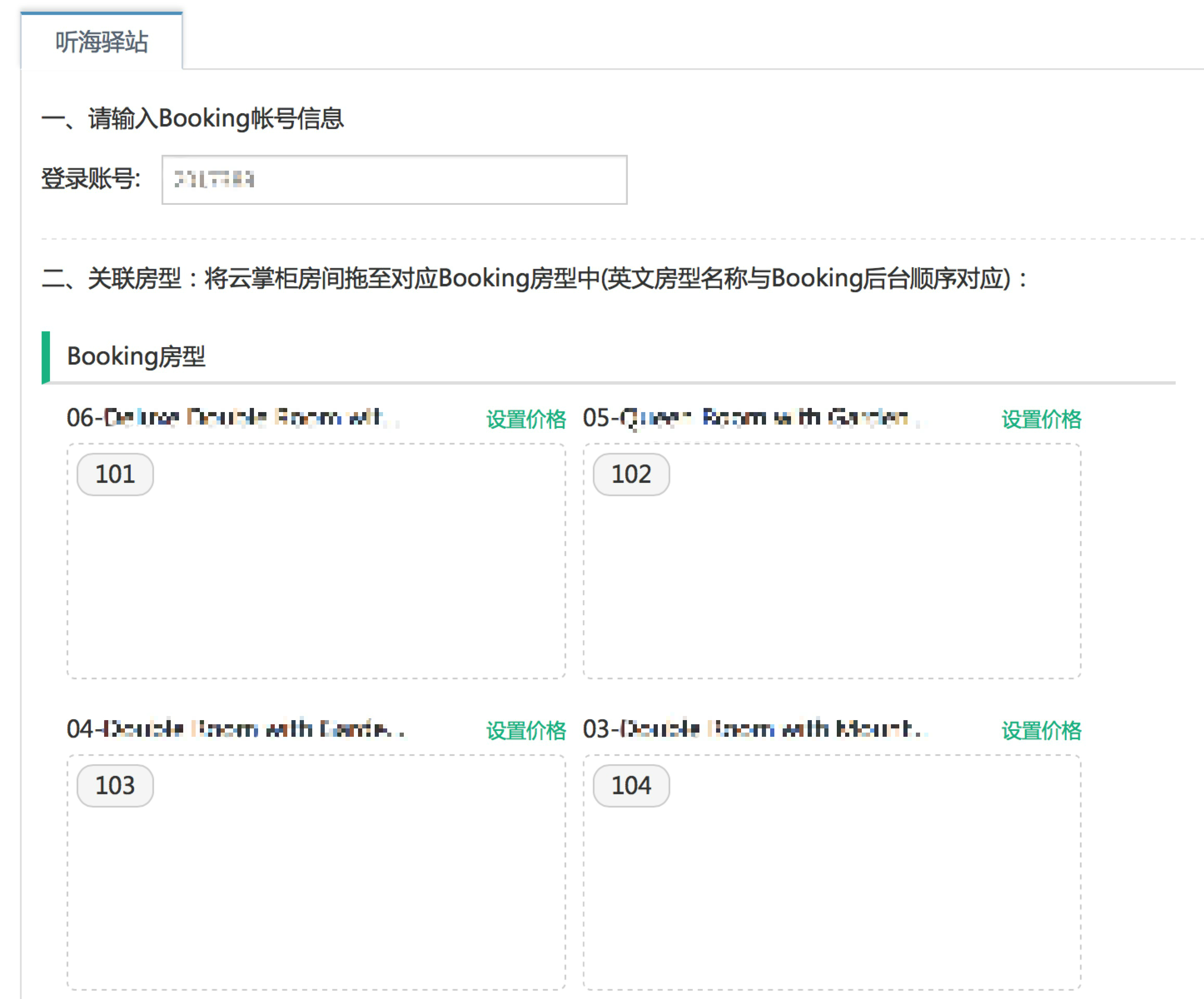 6. 对应好房型和房间的关系并设置好房价,点击确认。对应房间的时候,房型名称前面的两位数字,对应的是您booking后台房型ID的后两位数字。
