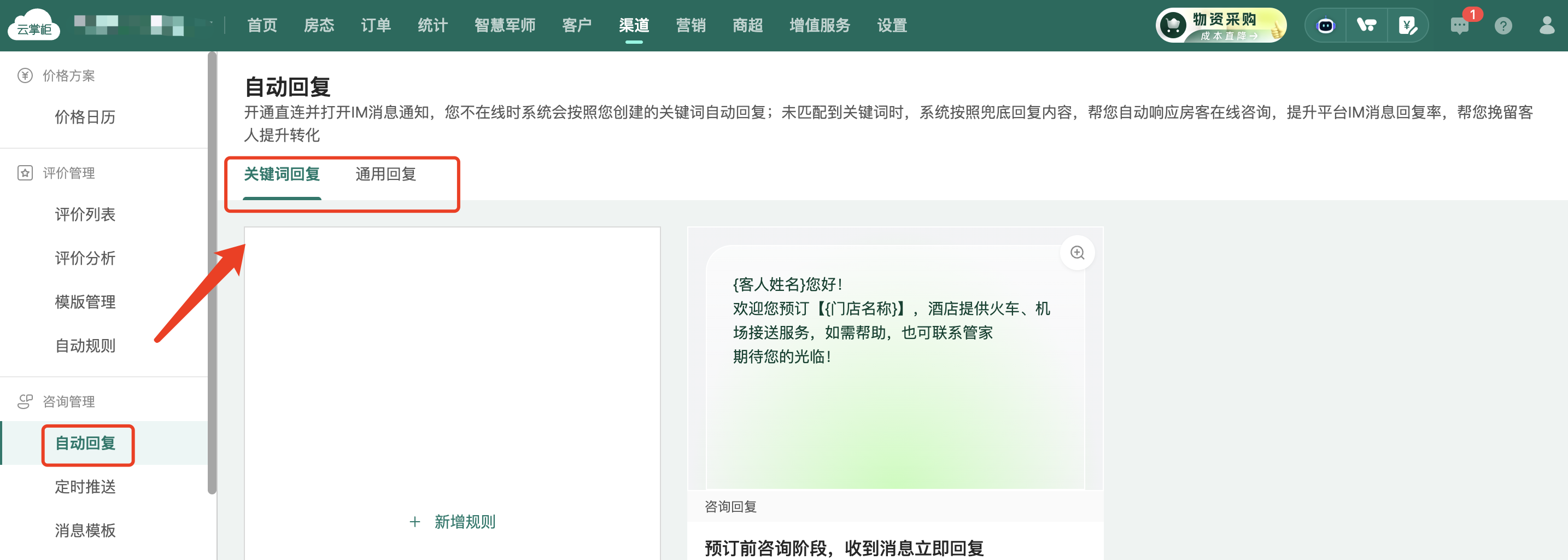 匹配不到关键词时,才会触发通用回复,提升咨询响应速度和及时回复率,以免让客人久等