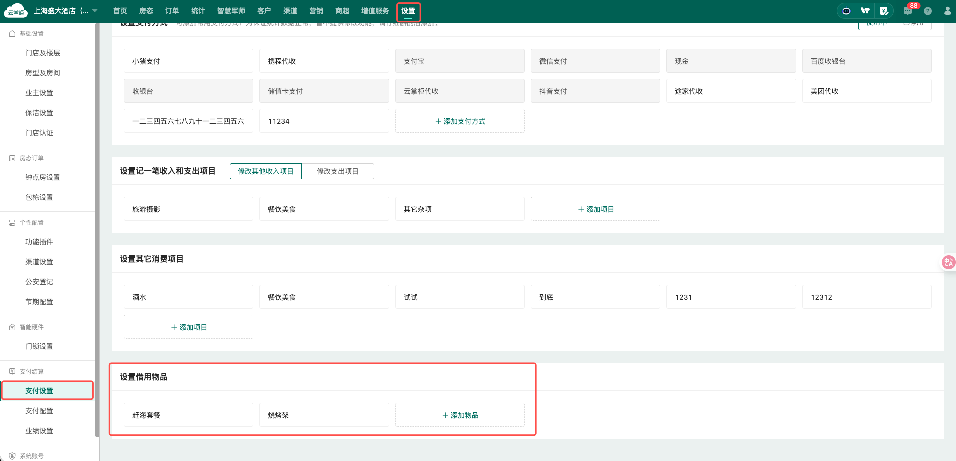 可在“设置”-“支付设置”-“设置借用物品”进行物品管理