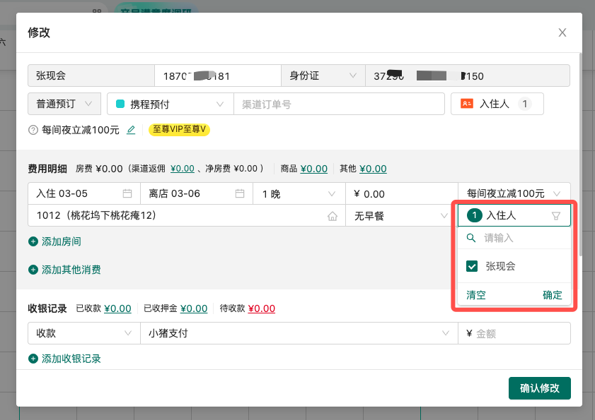 入住时选择入住人