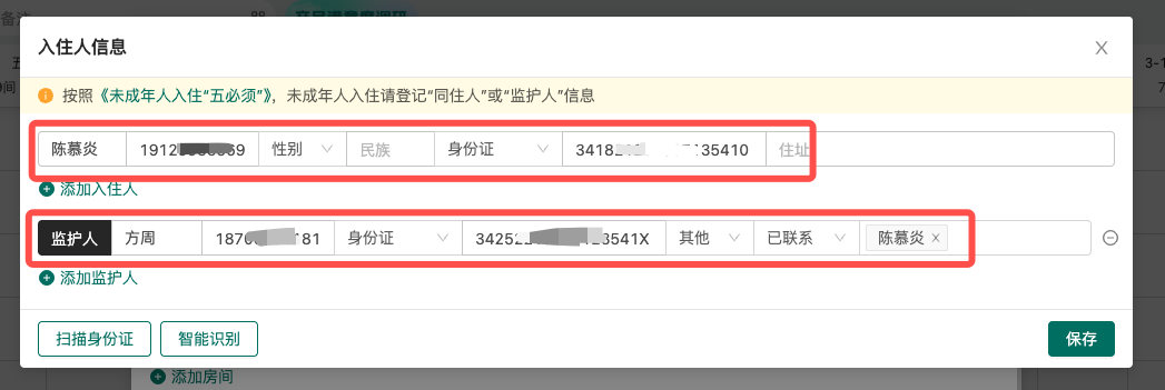 入住指南:办理入住后支持新增入住人,核验后会上报