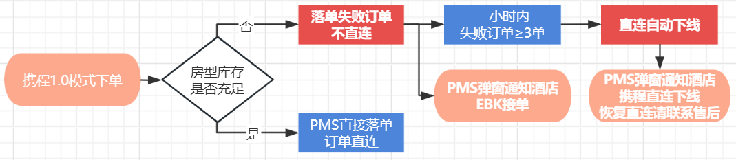 携程EBK(1.0)模式直连存在库存管理风险,当PMS房型库存不足或为0时,携程直连订单仍成功下发并落单导致超售风险,形成直连缺陷服务订单,近而影响携程直连接口稳定性,应携程要求即日起进行PMS房型库存校验落单。